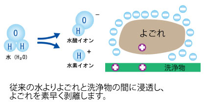 当社が採用している「電解イオン水」は、水をイオン分解することで生成される安全な高PHのアルカリ水です。